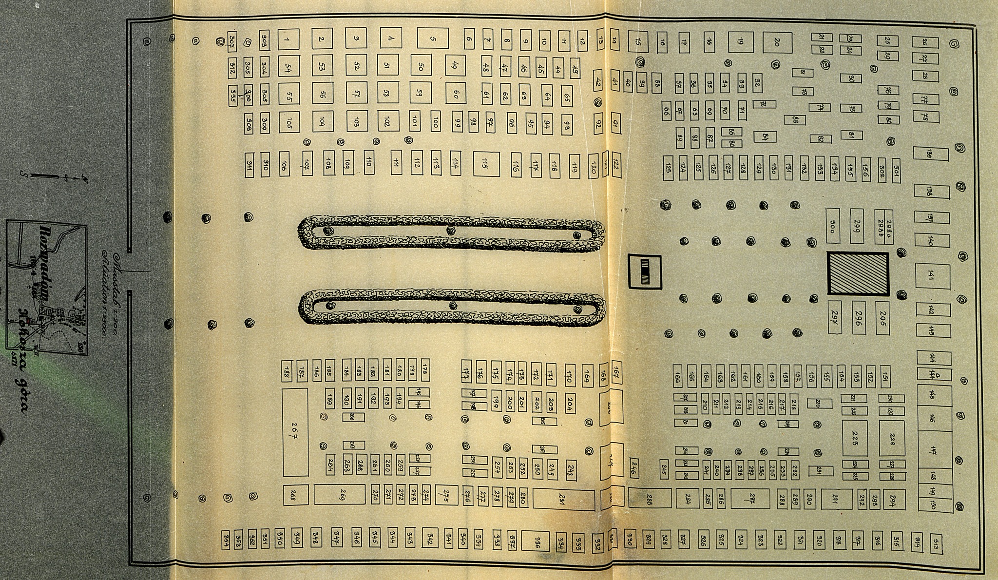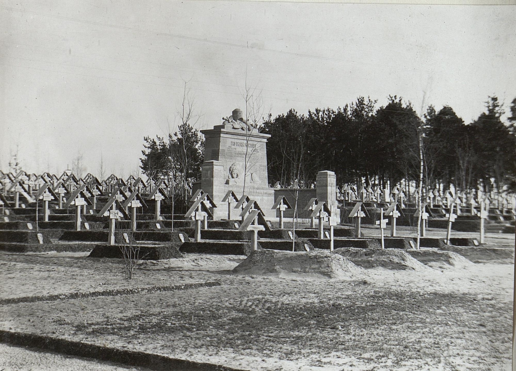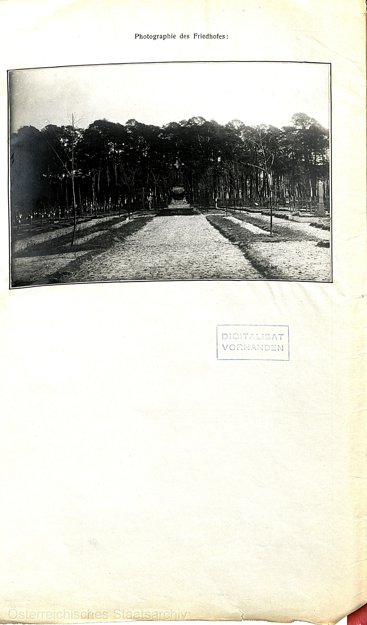 Problematykę pochówków i urządzania cmentarzy wojennych w Austro-Węgrzech szczegółowo uregulowano, nakładając jednocześnie obowiązek prowadzenia odpowiedniej dokumentacji. Na zdjęciu widoczny cmentarz wojenny w Galicji Wschodniej, urządzony przez służby tyłowe 4 Armii zgodnie z obowiązującymi w tym zakresie przepisami. Widać tzw. kwaterę centralną, zorganizowaną wokół pomnika – tu znajdowały się pochówki oficerskie. Widoczne przepisowe oznakowania grobów – zinwentaryzowana mogiła otrzymywała tabliczkę z nr pod którym wciągano ją do Katasterblatt.