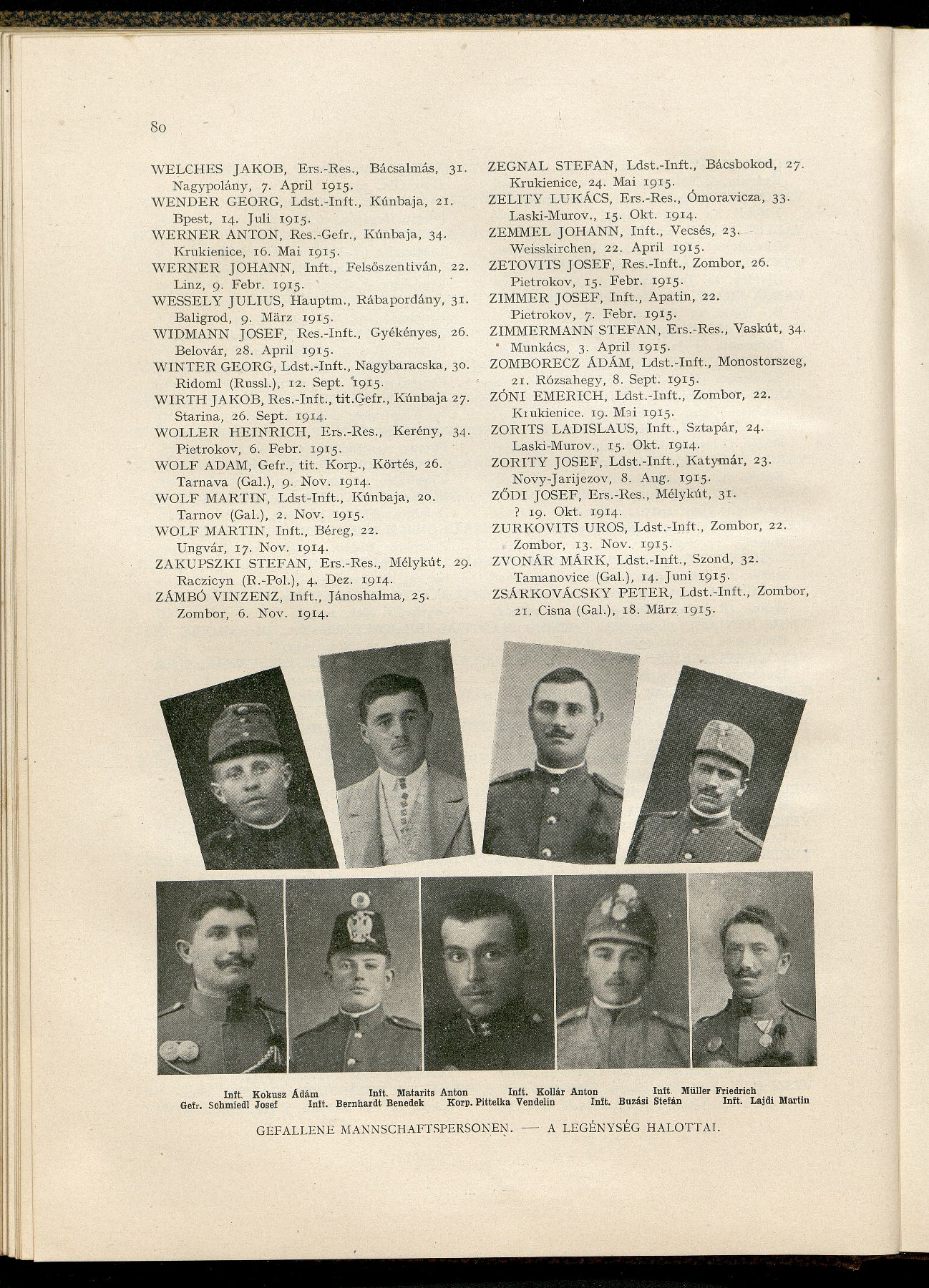 Fragment monografii IR 23 z danymi poległych żołnierzy – tego rodzaju opracowania pozwalają pozyskiwać również wizerunki poległych.