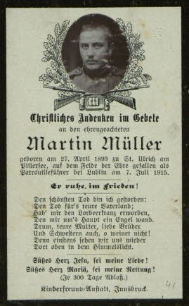 Müller Martin Prtf., kuk TKJR 1, *1893 Fieberbrunn/St Ulrich, Kitzbüchel +7/8.07.1915 (Bemerk.: das Bild)